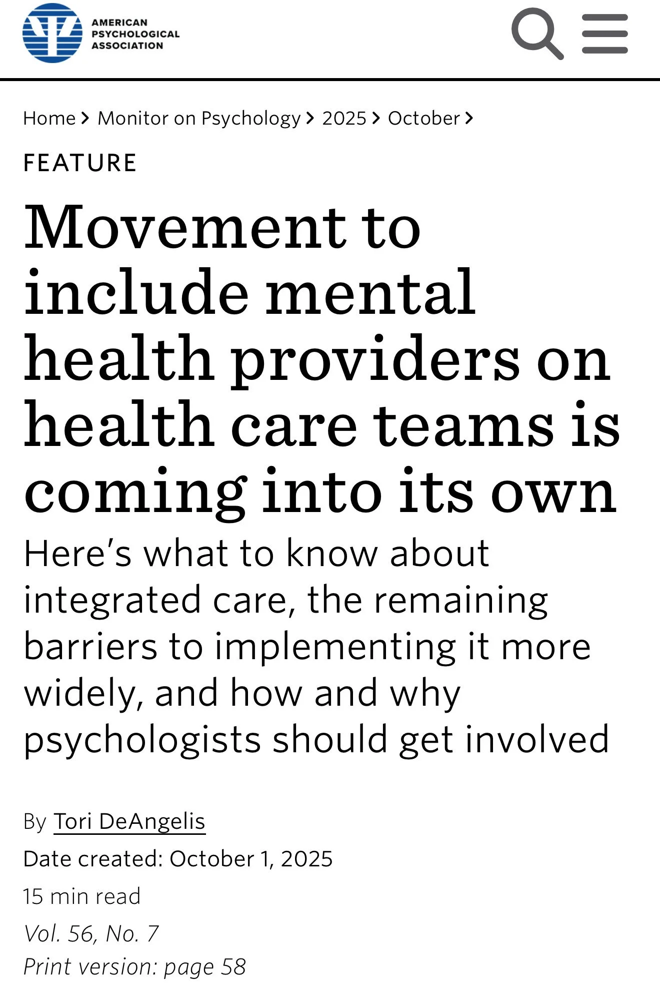 Movement to include mental health providers on health care teams is coming into its own